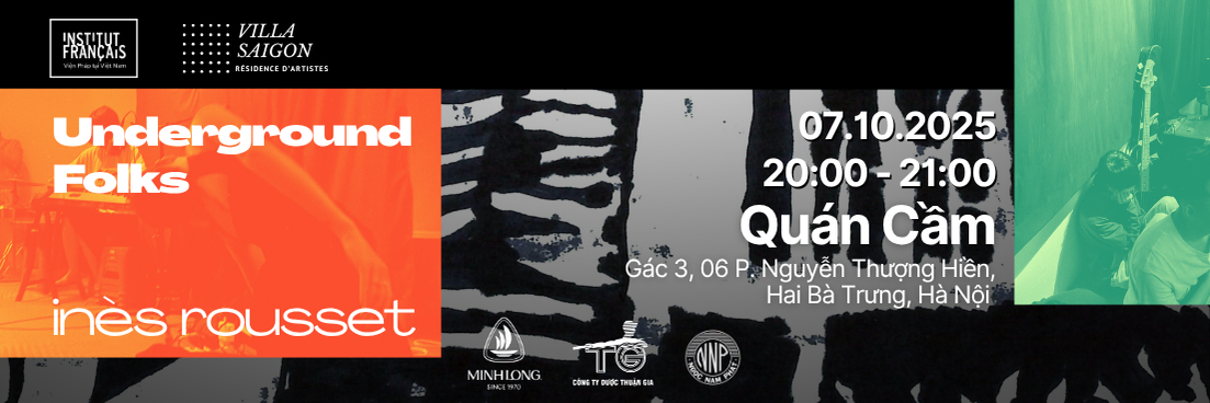 Gặp gỡ Inès Rousset trong buổi chia sẻ về quá trình nghiên cứu tại Hà Nội cho dự án “Underground Folks”: các cuộc gặp gỡ với nghệ sĩ/nhà sản xuất/nhà sưu tầm, khảo sát bối cảnh, tư liệu và ghi chép thực địa xoay quanh lịch sử âm nhạc underground tại Việt Nam, đặc biệt là folk.